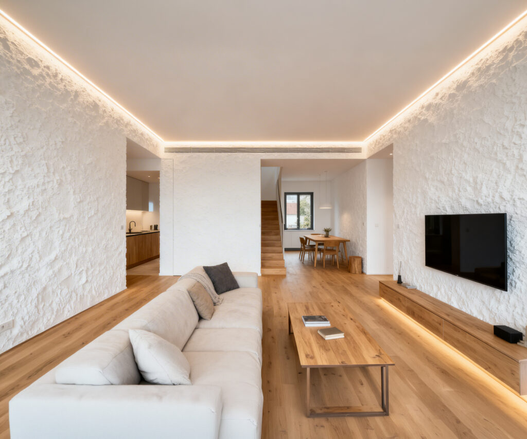 Wir planen deine Beleuchtung von Anfang an mit – nicht als Nachgedanke, sondern als Teil des Gesamtkonzepts. Alle Leuchtmittel sind LED; wir stimmen Farbtemperatur, Lichtstärke und Schaltzonen auf deine Lebensweise ab.